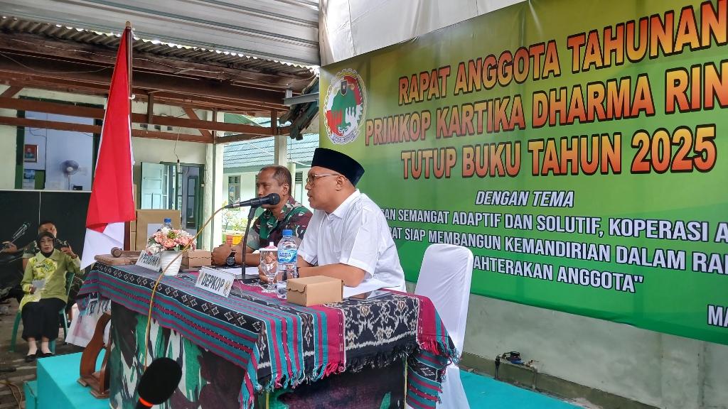 Mataram, NTB – Semangat kebersamaan dan komitmen membangun kemandirian anggota terasa kuat dalam Rapat Anggota Tahunan (RAT) tutup buku tahun 2025 Primer Koperasi (Primkop) Kartika Dharma Rinjani yang digelar di Markas Komando Distrik Militer (Kodim) 1606/Mataram, Jalan Pejanggik Nomor 7, Jum’at (13/2/2026) siang.