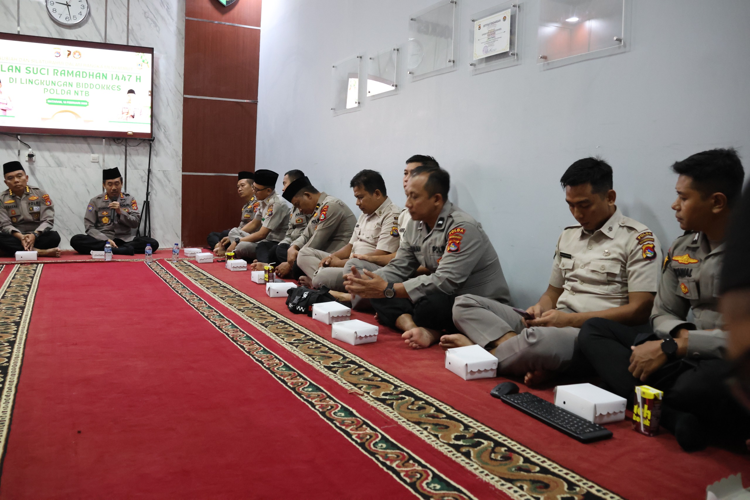 Kabiddokkes Polda NTB Kombes Pol dr. I Komang Tresna, Sp.OG. (K)., MARS., M.H.Kes., menyampaikan sambutan penuh makna. Ia mengajak seluruh personel menyambut Ramadhan dengan hati bersih serta semangat pelayanan.